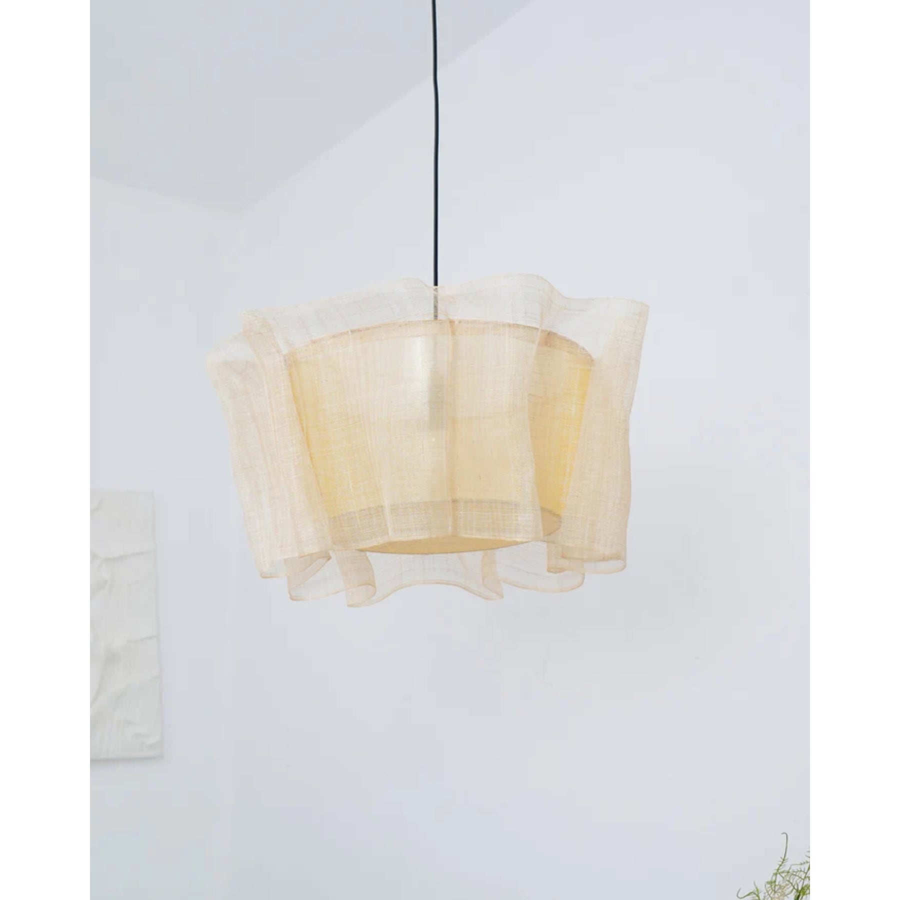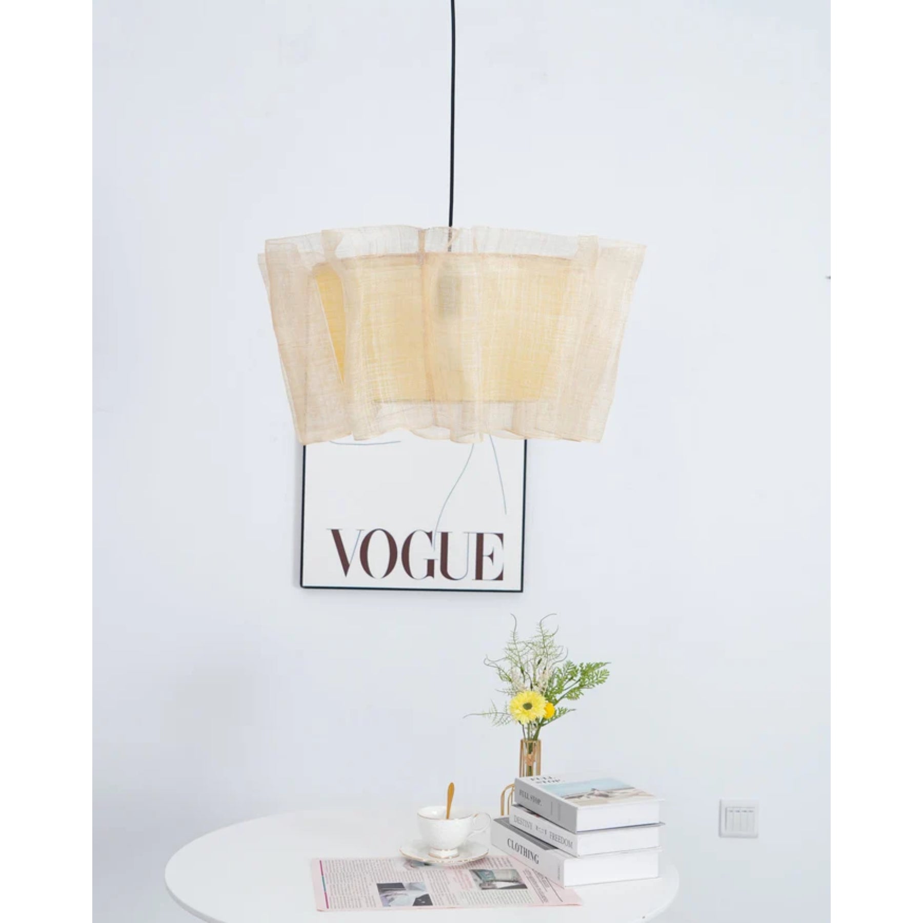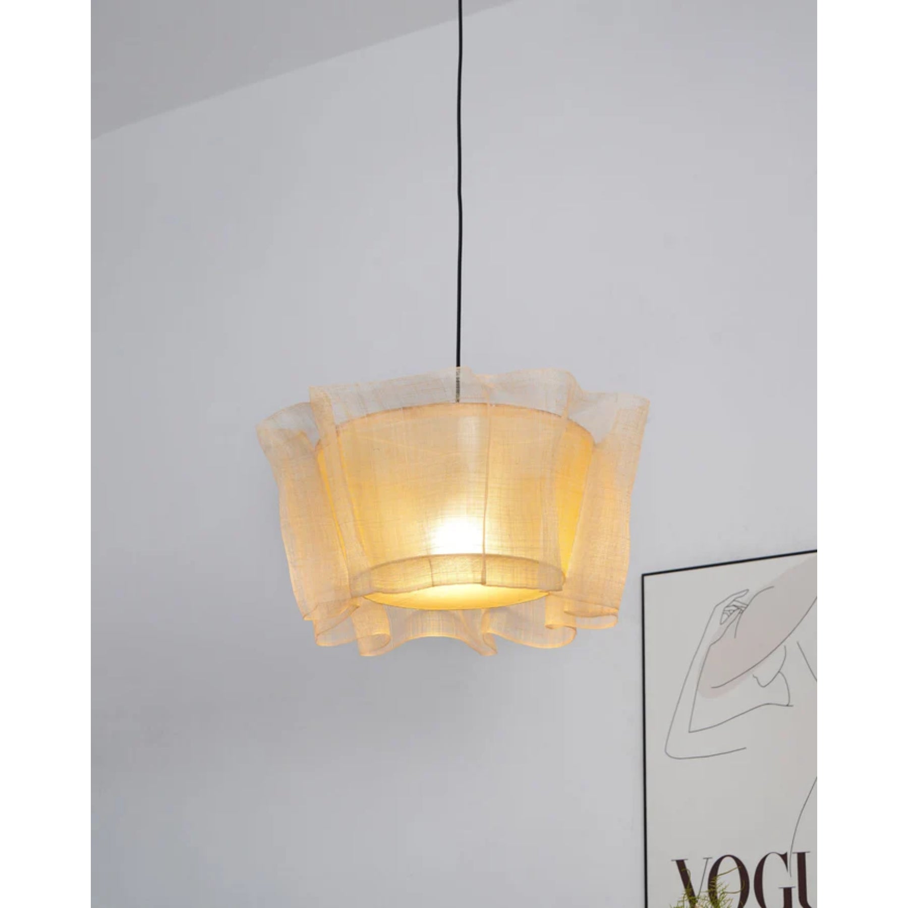 Die **Pendelleuchte** Floxozo verwandelt jeden Raum in eine Oase der Gemütlichkeit. Ihr aus natürlichem Hanf gefertigter Schirm strahlt ein warmes, einladendes Licht aus, das durch die gewebte Struktur sanft gefiltert wird. Der subtile beigen Farbton harmoniert perfekt mit modernen und skandinavischen Einrichtungsstilen und sorgt für eine angenehme Atmosphäre im Wohnzimmer, Esszimmer oder Schlafzimmer.