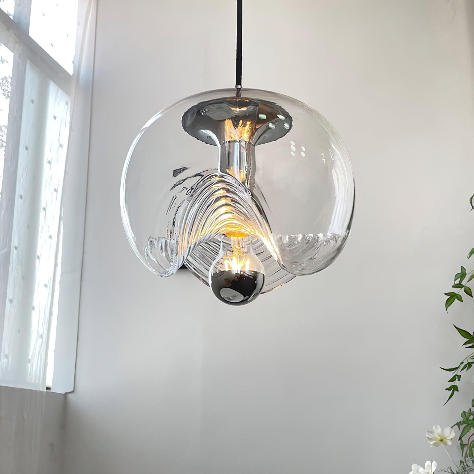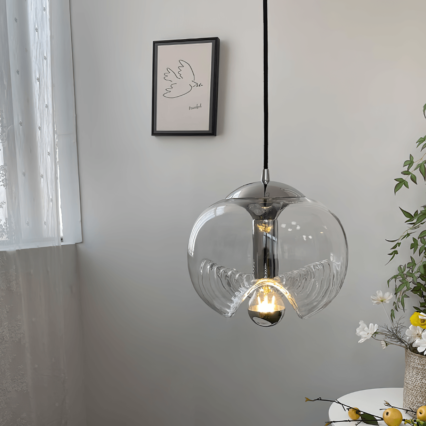 Die **Pendelleuchte** Frivona verwandelt jeden Raum in eine Oase des Stils und der Eleganz. Mit ihrem kunstvollen Glasdach und dem welligen Muster schafft sie eine **dynamische Lichtshow**, die eine beruhigende Atmosphäre erzeugt. Ideal über dem Esstisch, im Schlafzimmer oder im Wohnzimmer, bringt sie ein spielerisches Element in Ihr Zuhause.