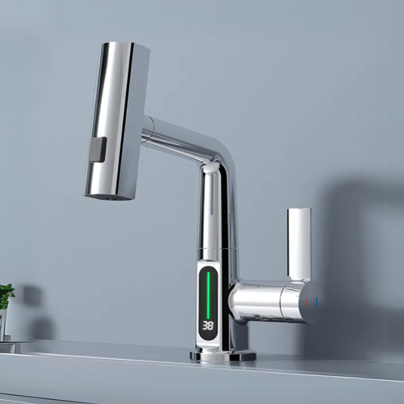 Die Armatur Küchen- und Badezimmer mit einem digitalen Display ist die perfekte Mischung aus modernem Design und innovativer Technologie. Diese Armatur bringt fortschrittliche Steuerungstechnologie direkt in Ihr Zuhause, um den Wasserfluss und die Temperatur nach Ihren Bedürfnissen anzupassen. Mit ihrem eleganten, minimalistischen Design passt sie perfekt in jede Küche oder jedes Badezimmer und sorgt für eine angenehme Benutzererfahrung. Armatur Küchen- und Badezimmer mit digitalem Display bietet nicht nur eine benutzerfreundliche Bedienung, sondern auch eine energieeffiziente Nutzung, die zur Reduzierung des Wasserverbrauchs beiträgt.