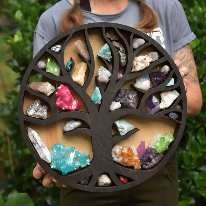 Kristallanzeige – Handgefertigt aus Holz – Natur – Individuell Anpassbar – Spirituelle Präsentation für Ihr Zuhause