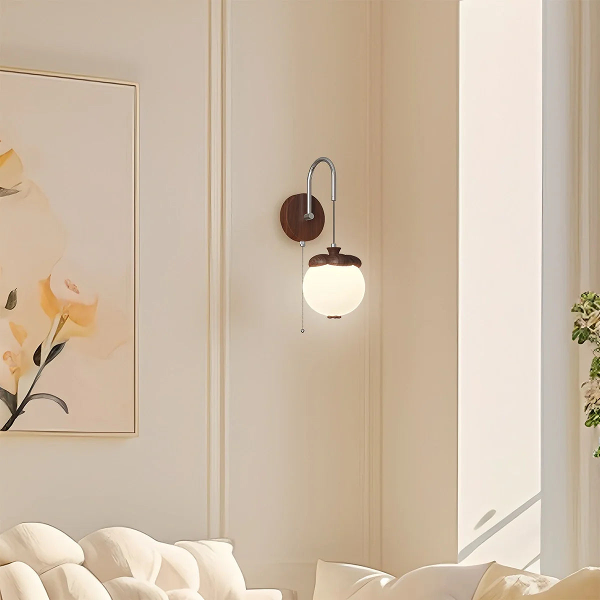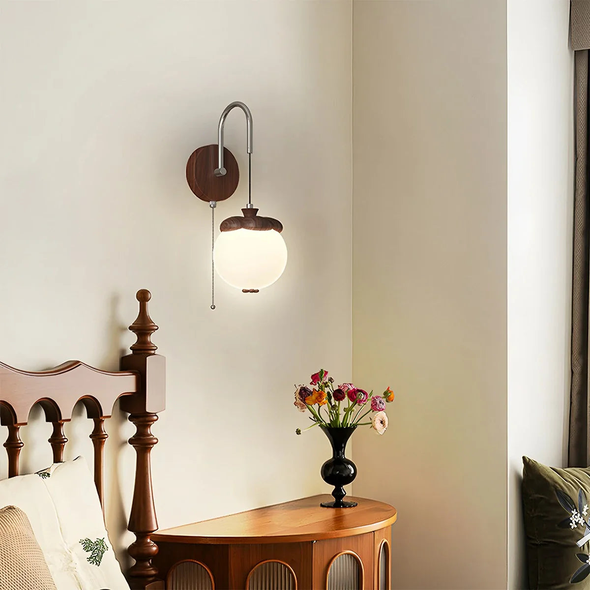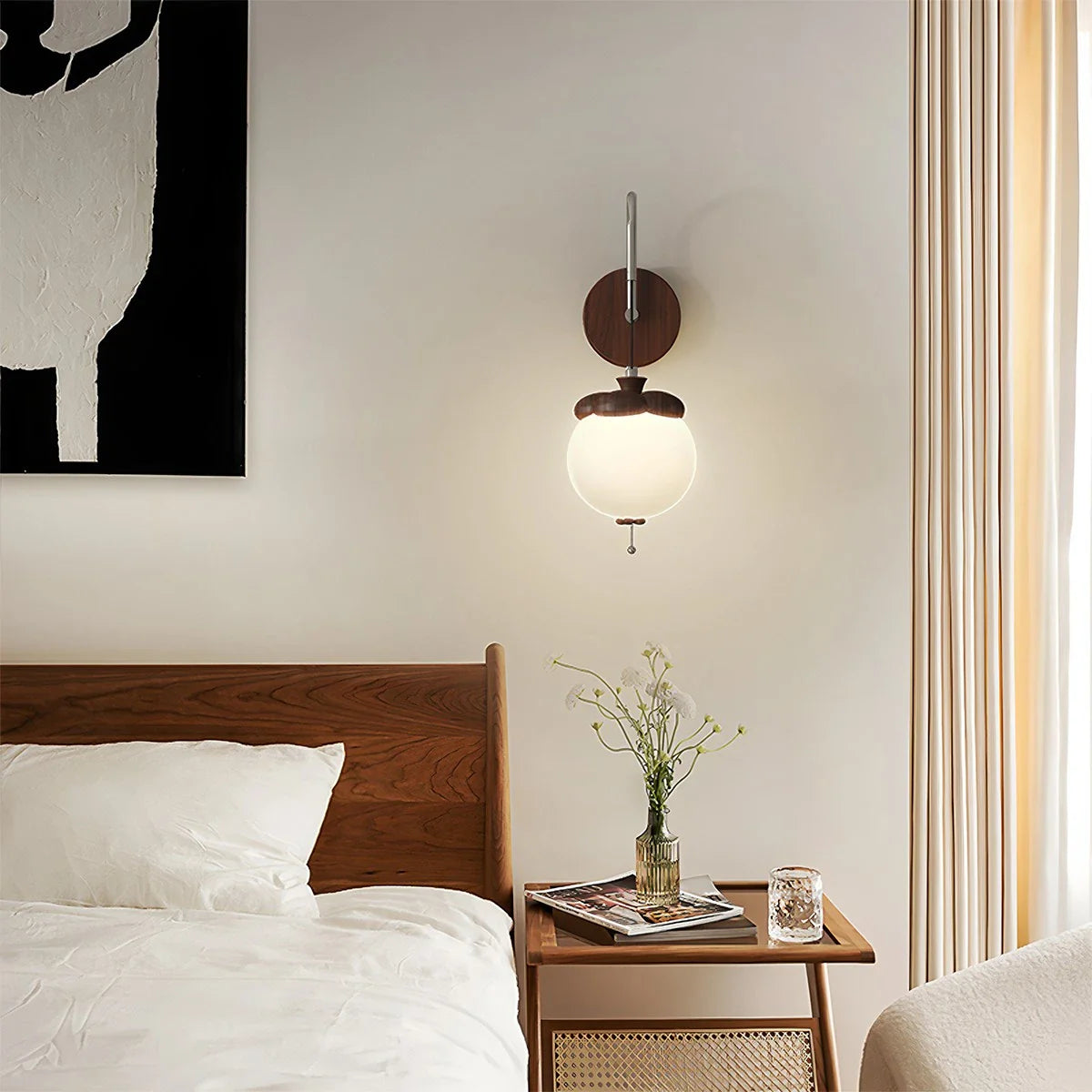 Die **Wandlampe** Lumisa verwandelt Ihre Wände in stilvolle Lichtquellen. Inspiriert von der Form eines Khaki, kombiniert sie eine warme Stoffkappe mit einem verstellbaren Arm, der gezielte Lichtakzente setzt. Ob beim Lesen im Bett oder zur Schaffung einer gemütlichen Atmosphäre im Wohnzimmer – die Lumisa sorgt für Komfort und Bequemlichkeit. Durch die Wandmontage bleibt mehr Platz auf Nachttischen, während das verspielte Design Ihrem Innenraum visuelles Flair verleiht.
