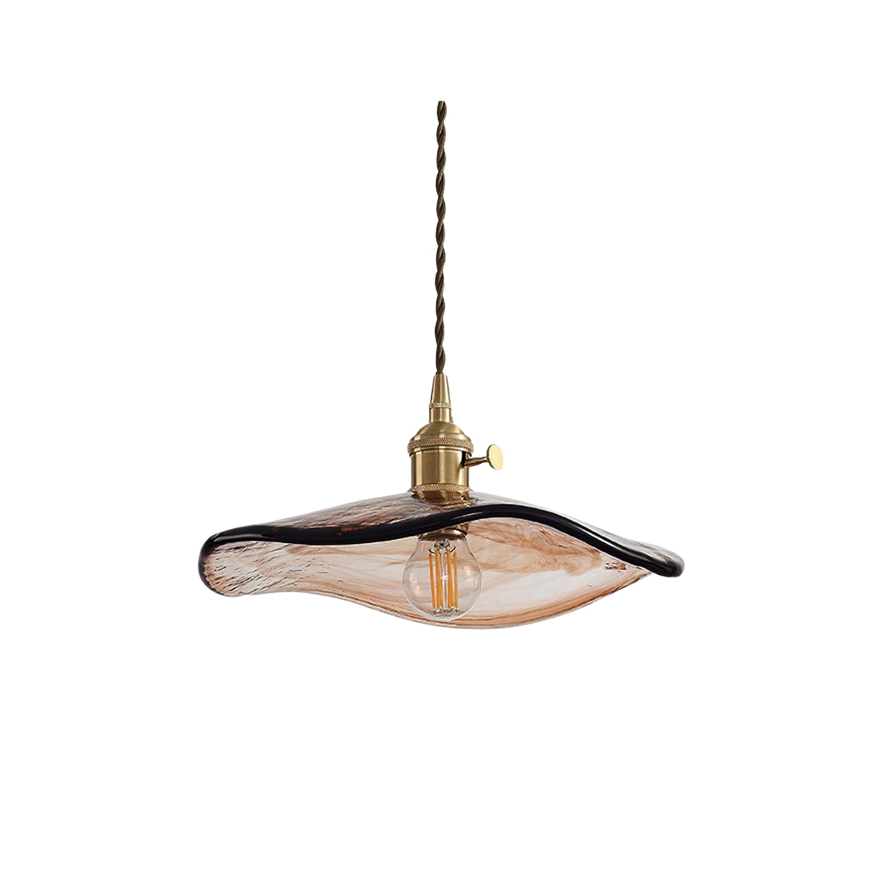 Die **Pendelleuchte** von Pellezo bringt mit ihrem verspielten Blütenblattdesign in warmen Brauntönen eine einladende Atmosphäre in jeden Raum. Das wellige Glas und das elegante Messing-Finish schaffen ein harmonisches Lichtspiel, das sowohl im Essbereich als auch im Wohnzimmer zum Blickfang wird. Diese Lampe ist ideal für gemütliche Ecken und sorgt für ein warmes, einladendes Ambiente.