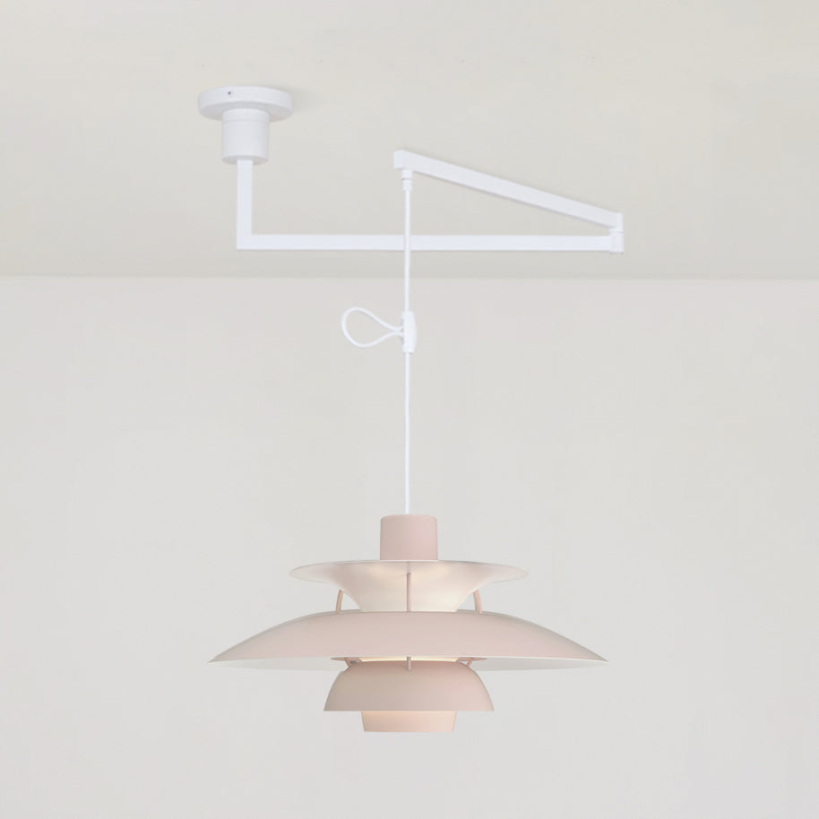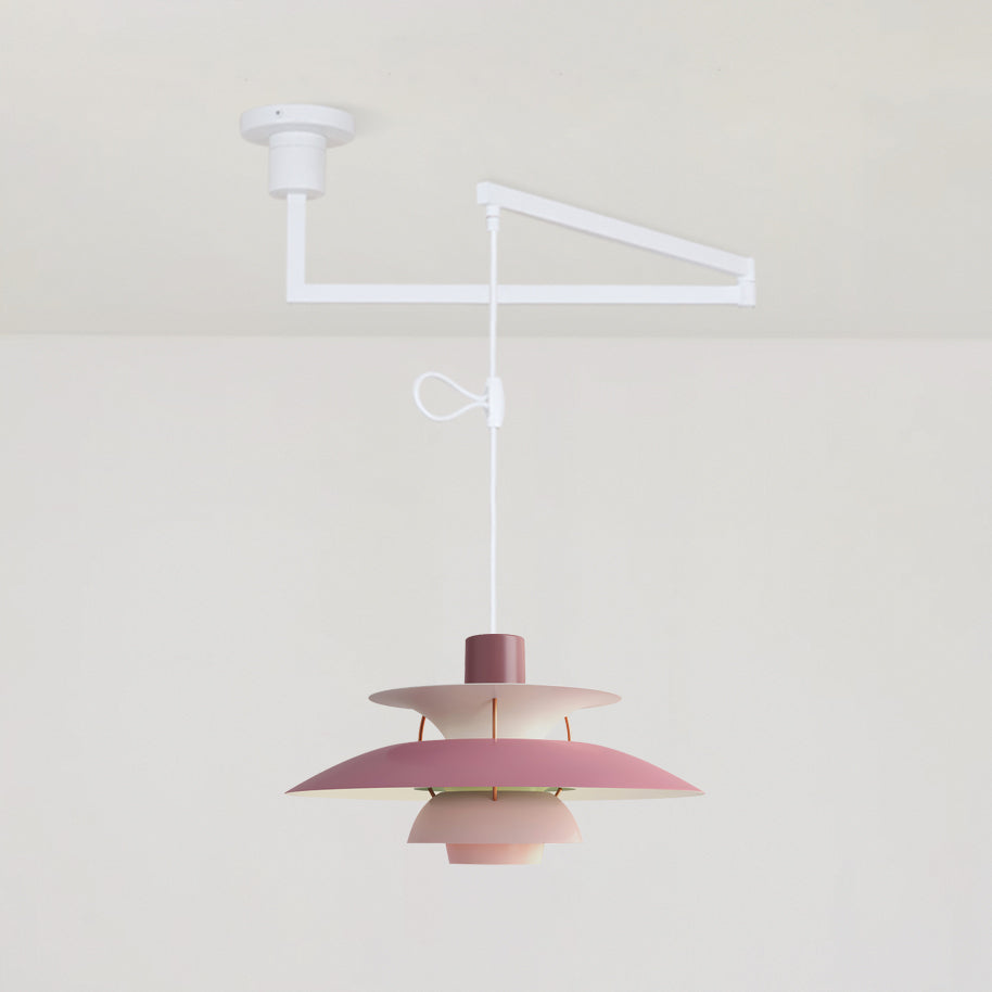 Die **Pendelleuchte** Covena verwandelt jeden Raum in eine stilvolle Oase. Mit ihrem verstellbaren Arm und der geschichteten Aluminiumhaube sorgt sie für ein weiches, diffuses Licht, das eine einladende Atmosphäre schafft. Perfekt geeignet für den Essbereich, das Wohnzimmer oder das Home Office, fügt sich diese Leuchte harmonisch in moderne sowie klassische Interieurs ein. Die Kombination aus Aluminium und Messing verleiht der Leuchte einen luxuriösen Charakter, der jeden Raum aufwertet.