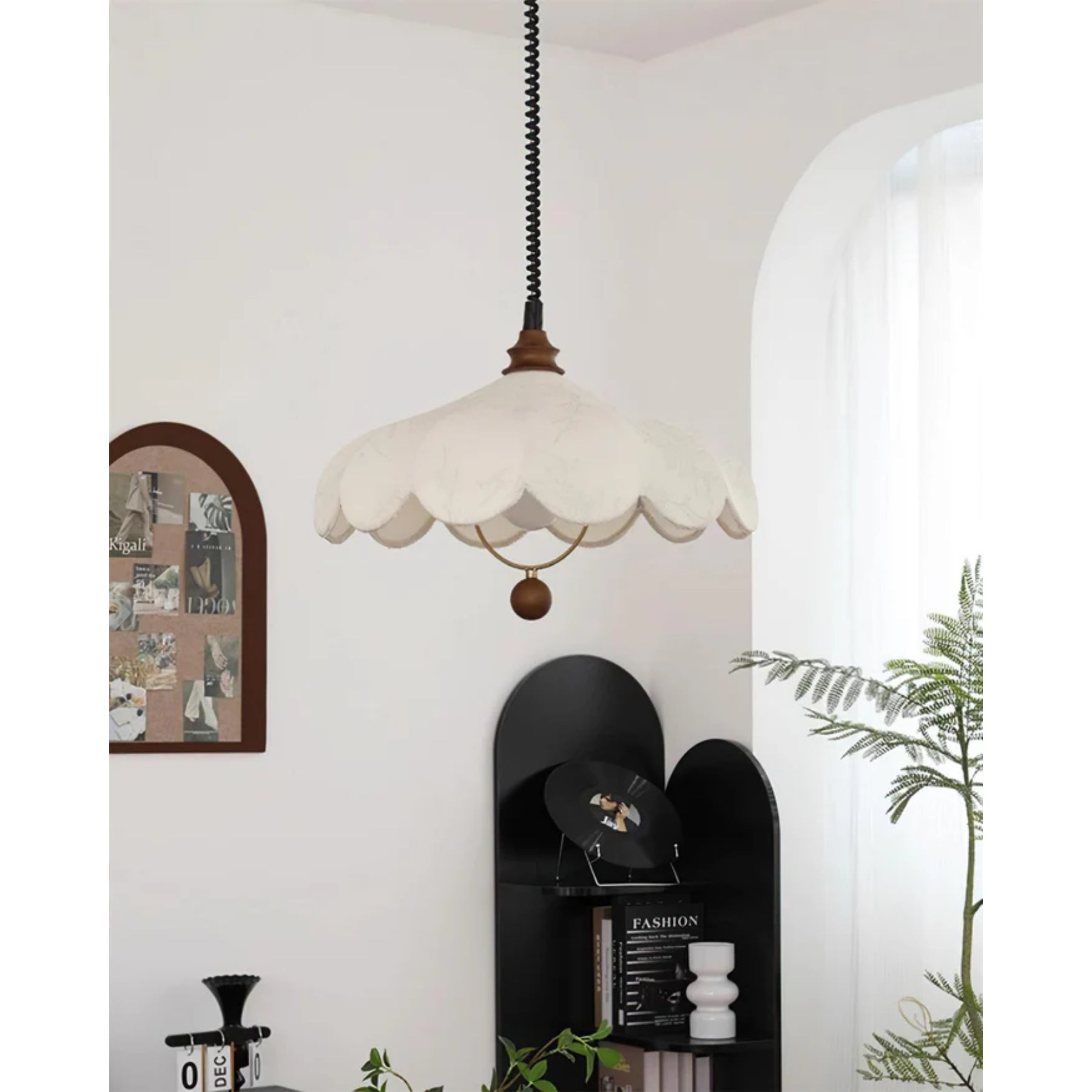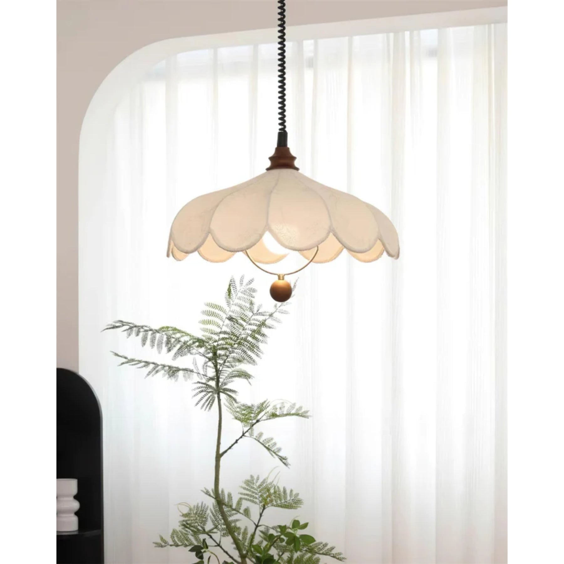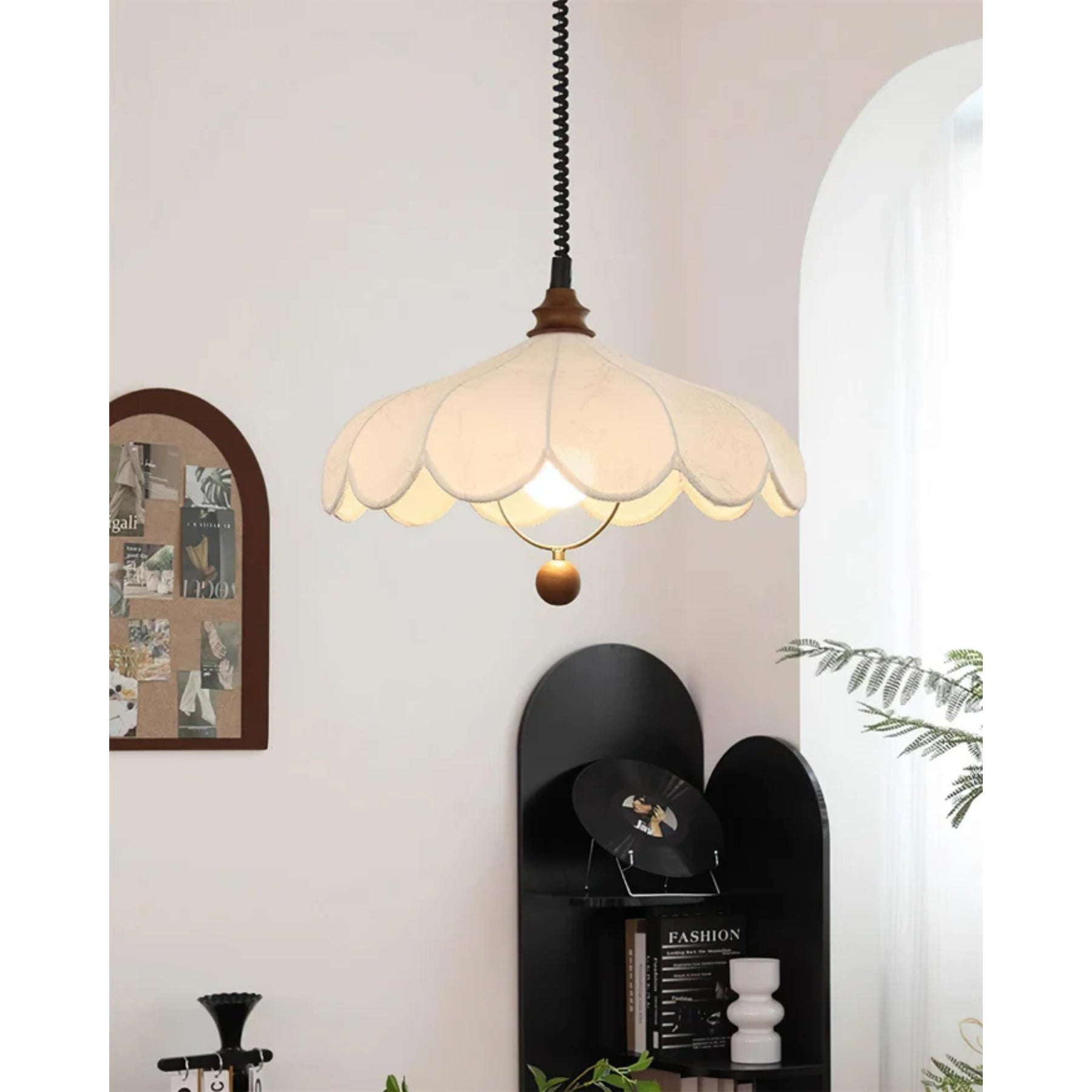 Die **Pendelleuchte** von Syvaron verwandelt jeden Raum in eine Oase der Eleganz und Romantik. Inspiriert von zarten Blütenblättern, strahlt die Stoffkappe ein warmes, sanftes Licht aus, das eine einladende Atmosphäre schafft. Ideal für Esszimmer, Schlafzimmer oder Wohnzimmer, lässt sich die Lampe dank des einstellbaren Aufhänges mühelos in der Höhe anpassen und sorgt so für individuelle Lichtakzente.