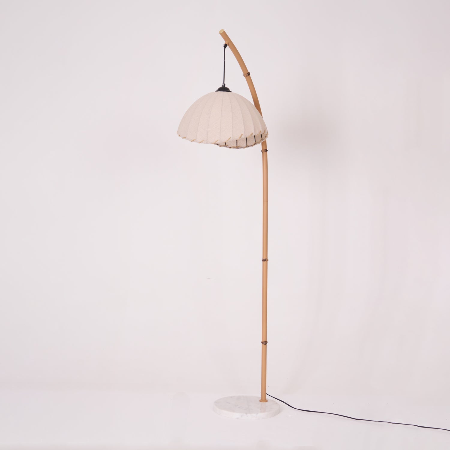 Die **Stehlampe** Juremi verwandelt jeden Raum in eine Oase der Gemütlichkeit. Mit ihrer harmonischen Kombination aus Bambus, beigem Leinen und edlen Marmordetails schafft sie eine warme und einladende Stimmung im Wohnzimmer, Schlafzimmer oder in der Leseecke. Die 160 cm hohe Lampe ist nicht nur funktional, sondern auch ein stilvolles Dekorationsobjekt, das sich perfekt in moderne, skandinavische oder ländliche Innenräume einfügt.