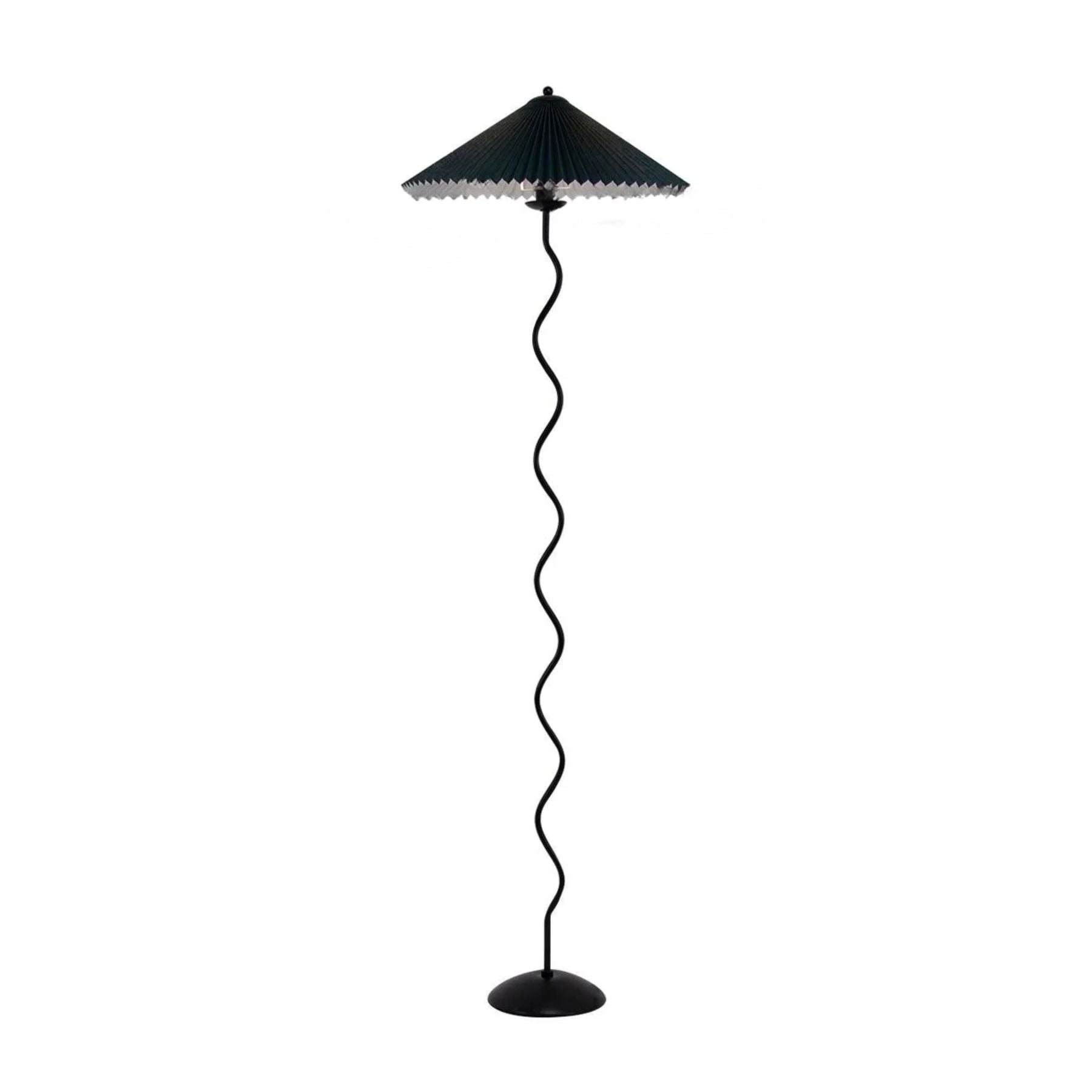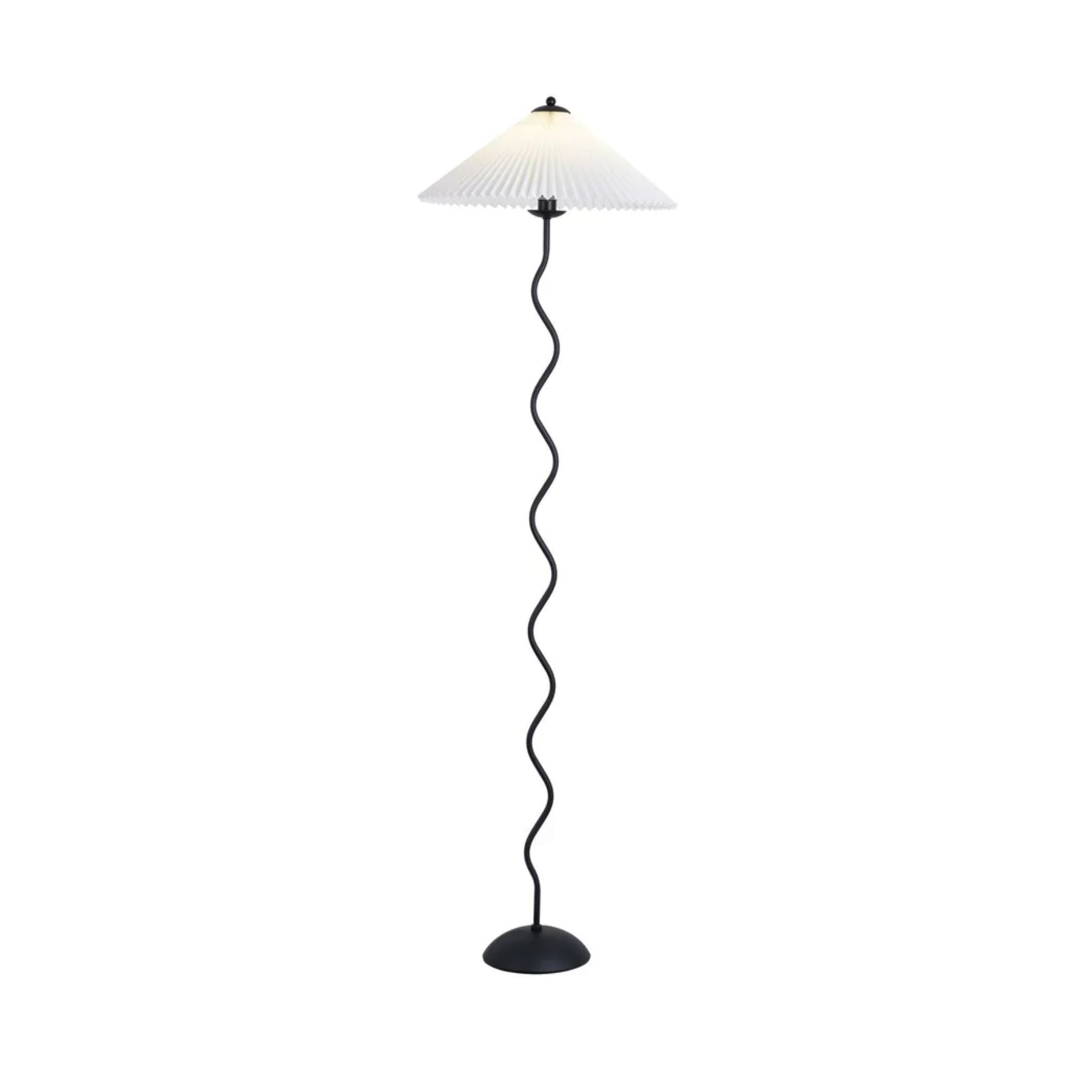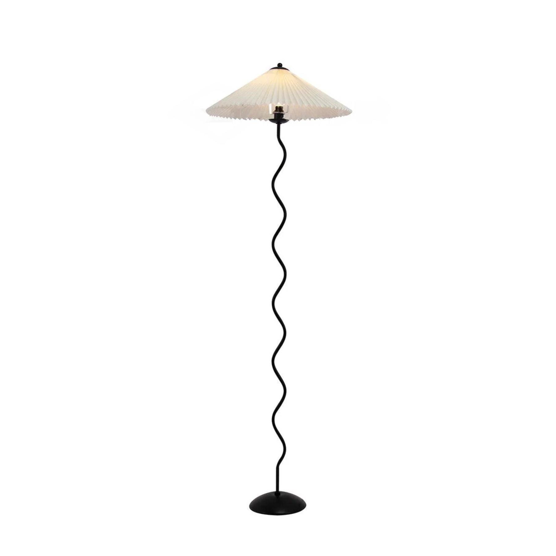 Die **Stehlampe** verwandelt Ihren Raum in eine Oase der Eleganz und Gemütlichkeit. Mit ihrem welligen Metallrahmen und der gefalteten Stoffhaube bringt sie eine spielerische Leichtigkeit in Ihr Wohnzimmer oder Schlafzimmer. Diese Lampe ist nicht nur ein Lichtspender, sondern auch ein stilvolles Dekorationsobjekt, das sofort ins Auge fällt und eine warme Atmosphäre schafft.