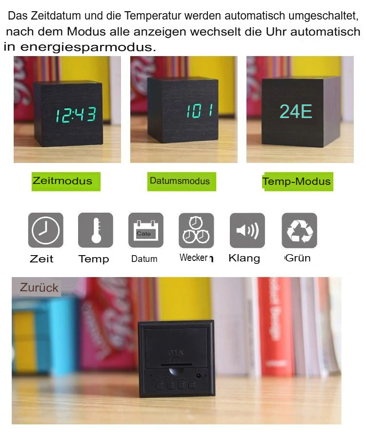Die Tischuhr CUBE DIGITAL wird aus hochwertigen Materialien wie Bambus und Holz gefertigt, was für eine lange Lebensdauer sorgt. Diese Materialien sind nicht nur umweltfreundlich, sondern verleihen der Uhr auch eine edle Optik. Im Vergleich zu herkömmlichen Kunststoffuhren überzeugt diese Tischuhr durch ihre Robustheit und ihr langlebiges Design. Sie wird Ihnen jahrelang Freude bereiten und bleibt immer ein stilvolles Accessoire in Ihrem Raum.