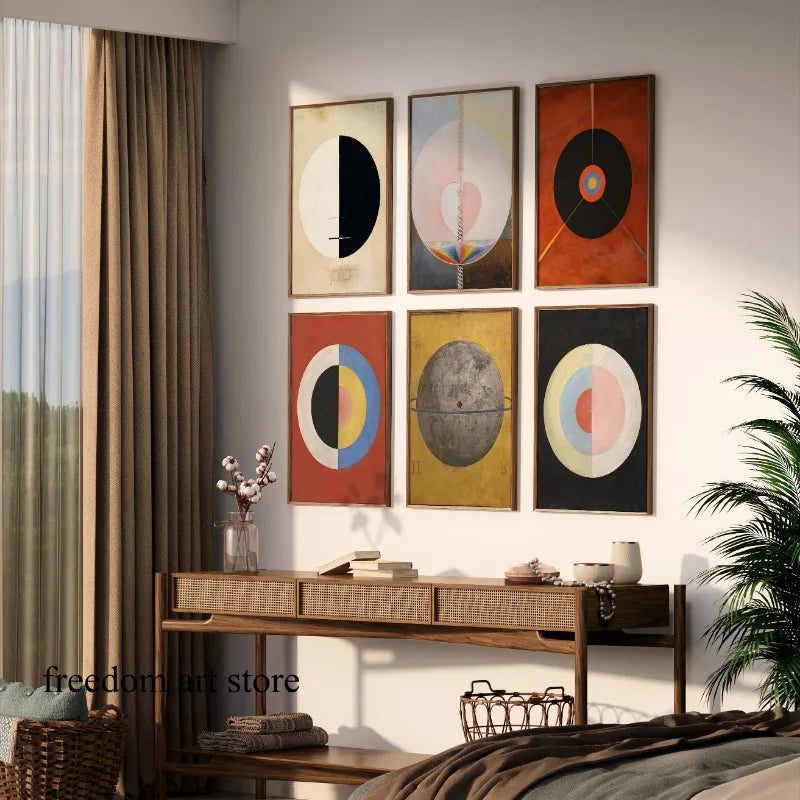 Die Wandbilder von Hilma Af Klint zeichnen sich durch lebendige Farben und dynamische Formen aus, die jeden Raum aufwerten. Ideal platziert über einem Sofa oder in einem kreativen Arbeitsbereich, schaffen sie eine inspirierende Umgebung, die zum Nachdenken anregt.