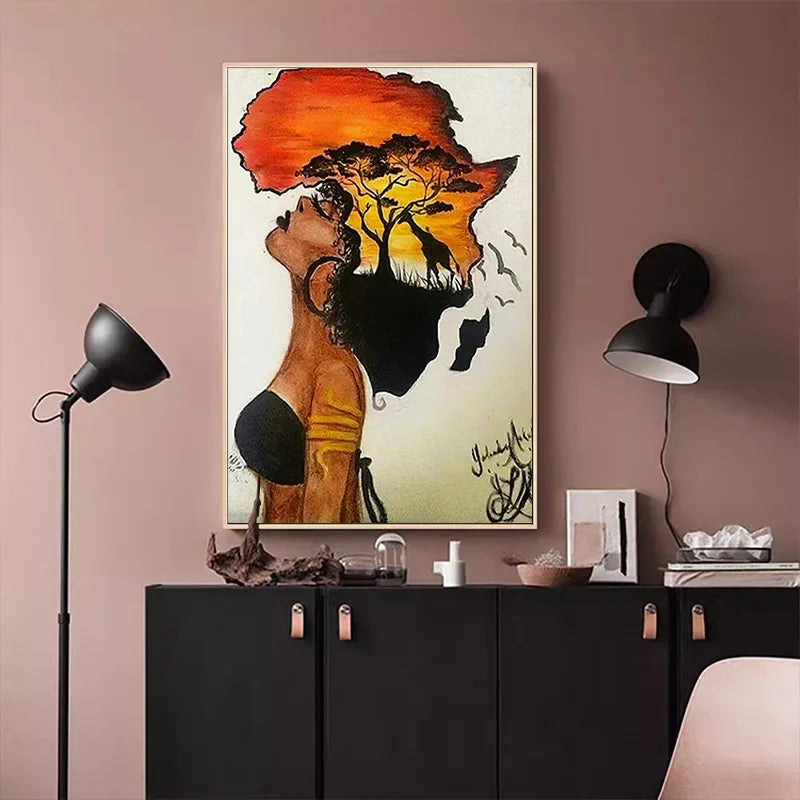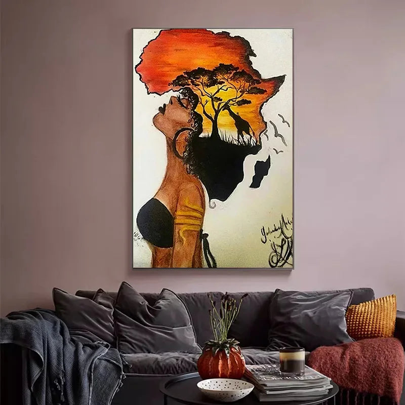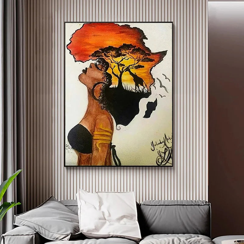 Verleihen Sie Ihrem Raum mit diesem **Wandbild** eine inspirierende Note. Die abstrakte Darstellung einer afrikanischen Karte zieht alle Blicke auf sich und schafft eine warme, einladende Atmosphäre. Ideal für Wohnzimmer oder Arbeitsräume, wo Kunst und Kultur aufeinandertreffen und zum Träumen einladen.