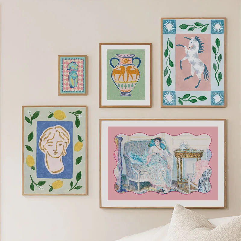 Verleihen Sie Ihrem Wohnraum mit diesem **Wandbild** eine inspirierende Note. Die lebendige Darstellung eines Einhorns in abstrakter Form zieht alle Blicke auf sich und schafft eine Atmosphäre von Fantasie und Kreativität. Ideal für moderne Wohnräume, bringt dieses Kunstwerk eine fröhliche und verspielte Stimmung in Ihr Zuhause.