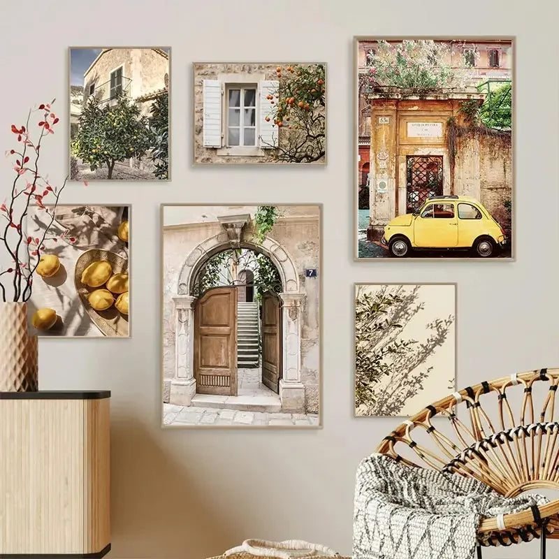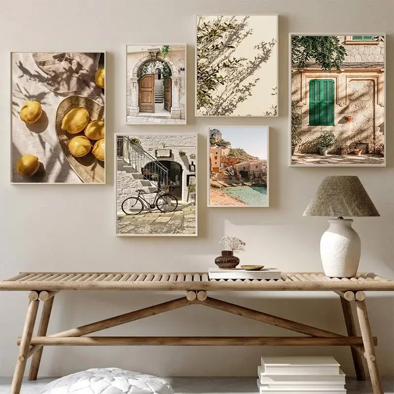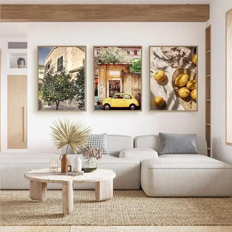 Verleihen Sie Ihrem Raum mit dieser **Wandkunst** einen Hauch von italienischem Flair. Die lebendigen Zitronen und die malerische Stadtlandschaft schaffen eine einladende Atmosphäre, die Erinnerungen an sonnige Tage und entspannte Momente weckt. Ideal für Ihr Wohnzimmer oder Schlafzimmer, bringt dieses Kunstwerk eine erfrischende Note in Ihr Zuhause.