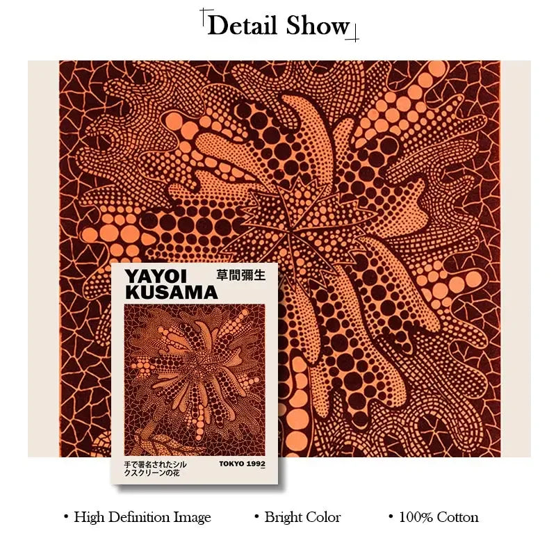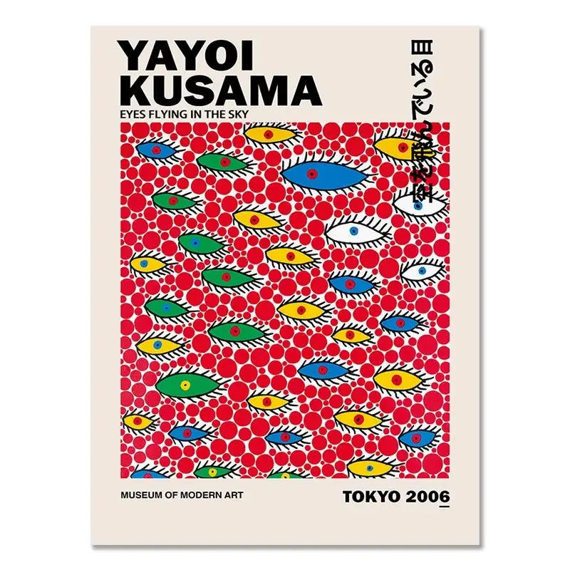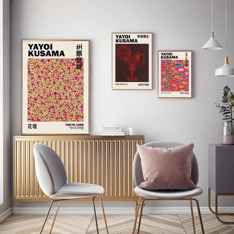 Verleihen Sie Ihrem Raum mit diesem **Wandposter** von Yayoi Kusama eine inspirierende Note. Die lebendigen Farben und das abstrakte Design schaffen eine Atmosphäre von Kreativität und Eleganz, die sowohl im Wohnzimmer als auch im Schlafzimmer zur Geltung kommt. Lassen Sie sich von der Kunst der renommierten Künstlerin verzaubern und verwandeln Sie Ihre Wände in eine Galerie der modernen Kunst.