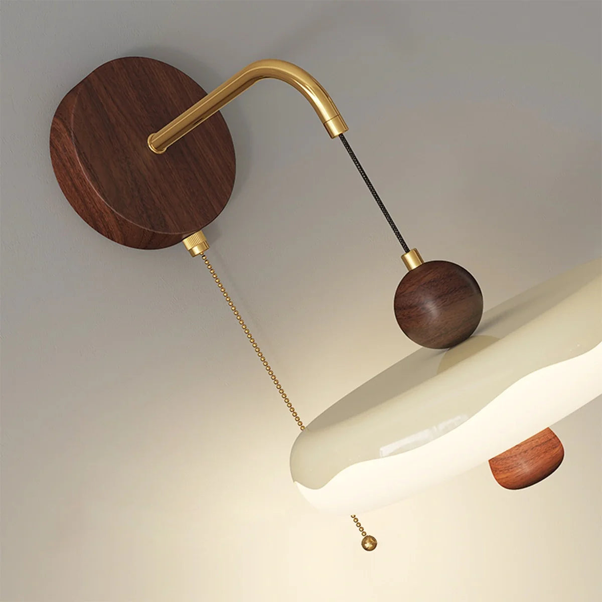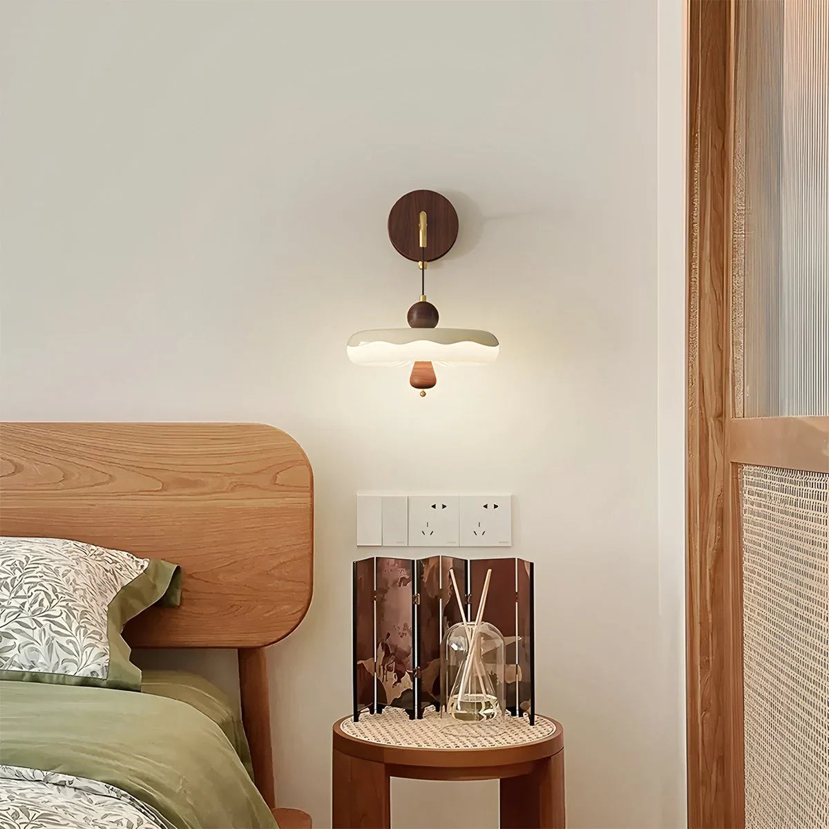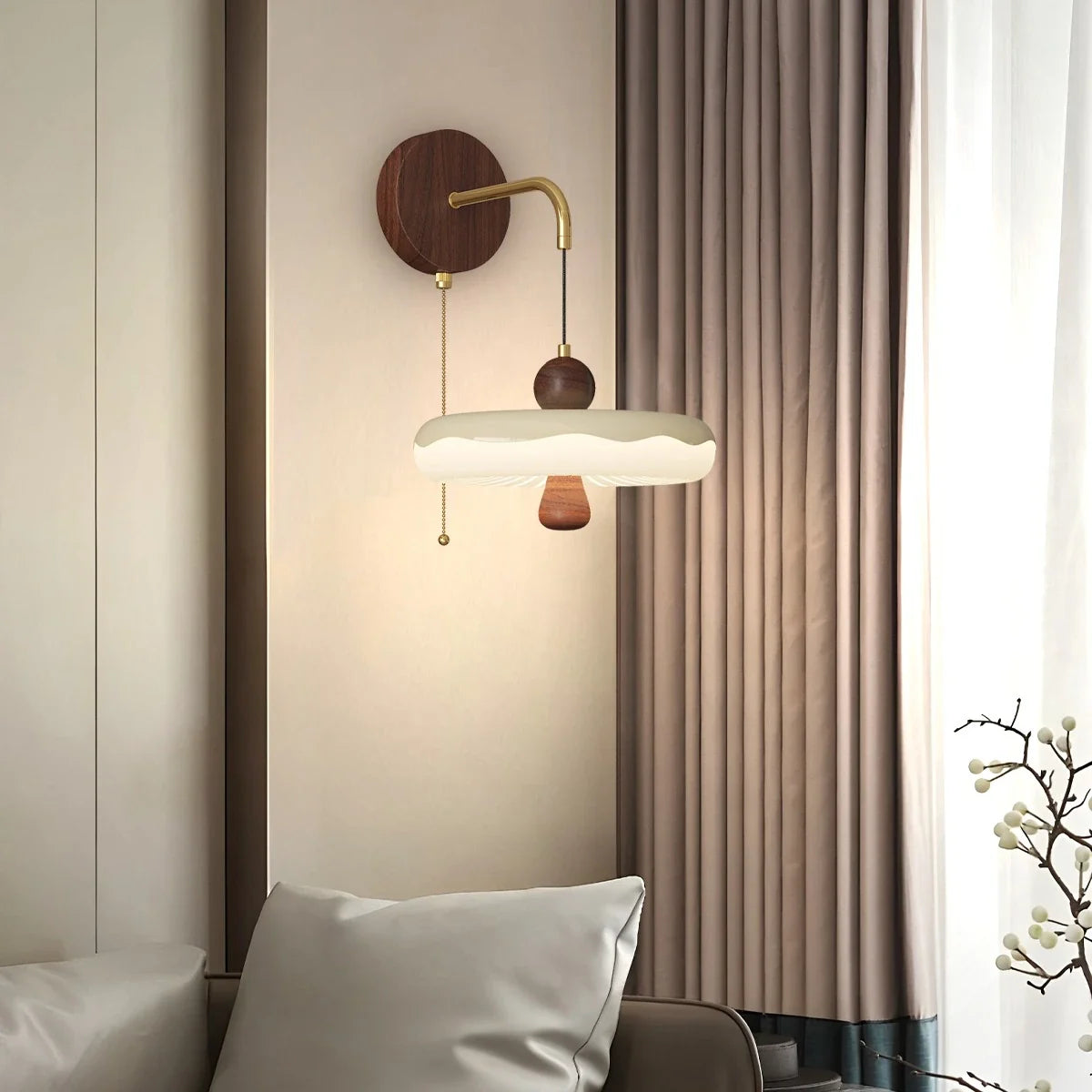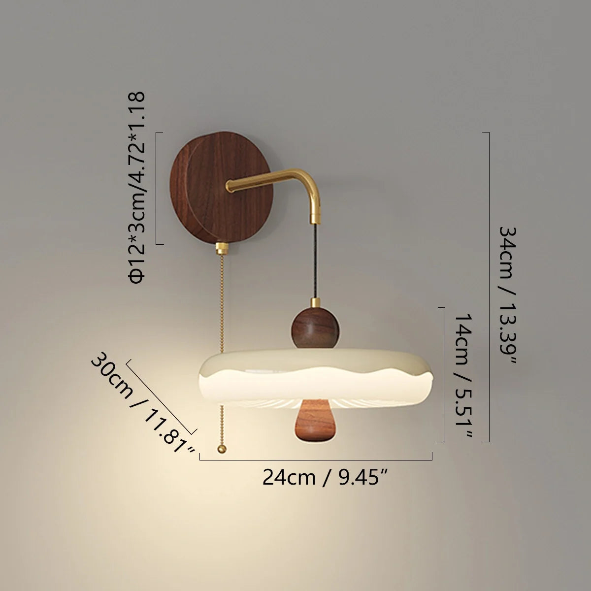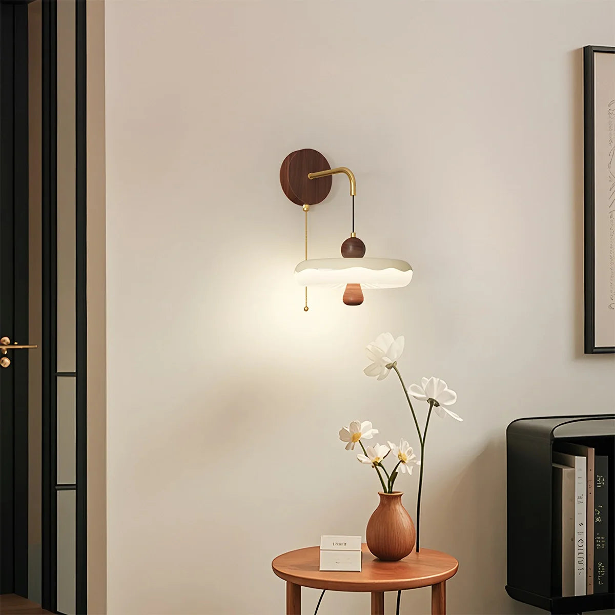 Zelani Wandlampe – Stoff – Creme – Integriertes Holzbrett – Skandinavisches Design für Innenräume