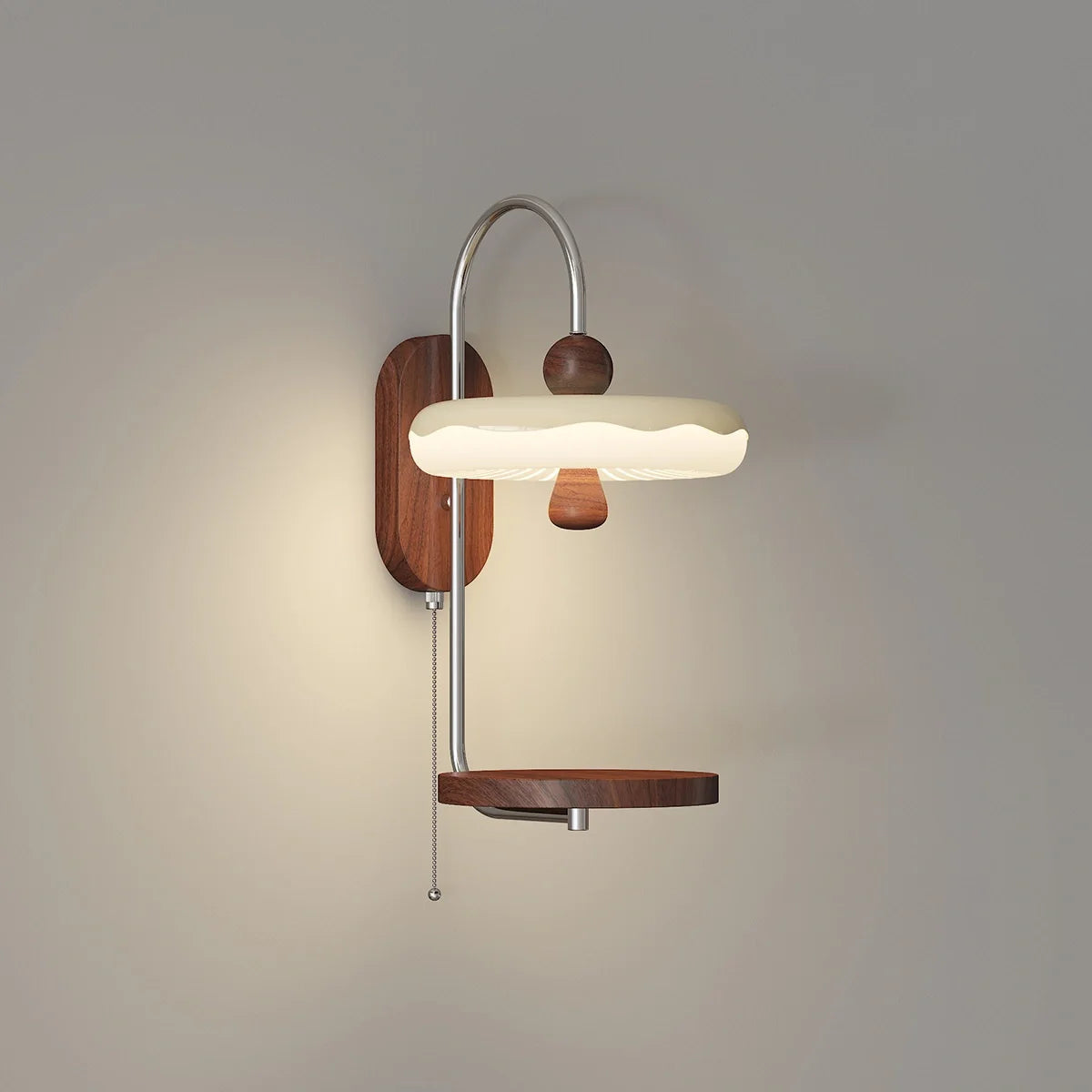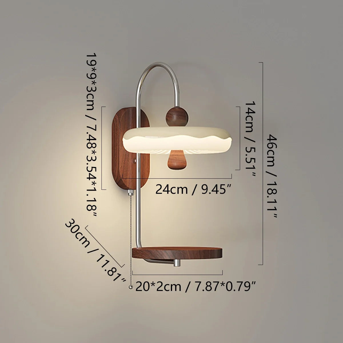 Die **Wandlampe** Zelani verwandelt jeden Raum in eine Oase der Ruhe. Mit ihrem weichen, cremefarbenen Stoff sorgt sie für eine warme, entspannende Lichtverglasung, die ideal für Schlafzimmer oder Wohnzimmer ist. Diese Lampe ist nicht nur eine Lichtquelle, sondern auch eine praktische Ergänzung mit einem integrierten Holzbrett, das Platz für Bücher, Brillen oder kleine Accessoires bietet.